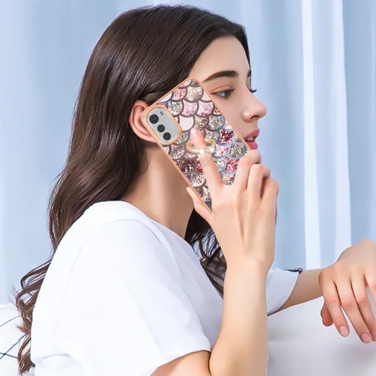 - 1x Funda TPU con Anillo para Motorola Moto E32 4G y E32S Galvanoplastia IMD (Escamas Rosas)