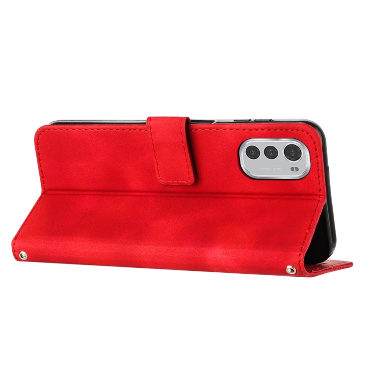 Funda de Cuero para Motorola Moto E32 Dream Triangle con Cordón (Rojo)