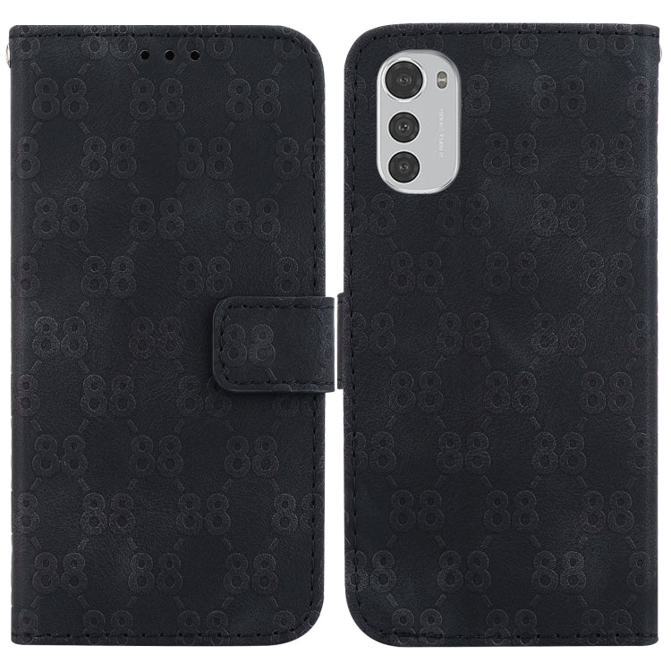 Estuche para Motorola Moto E32 de Cuero en Relieve con Doble Forma de 8 (Negro)