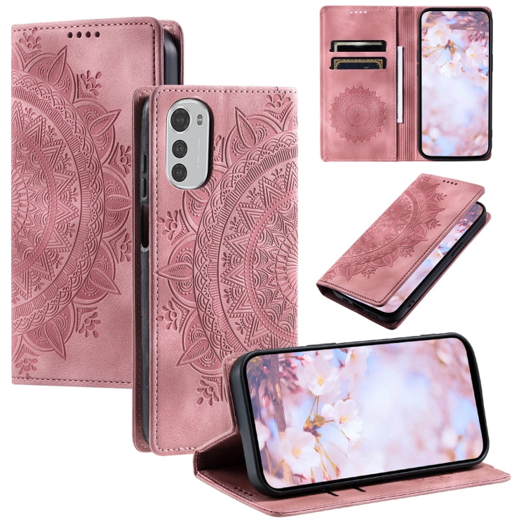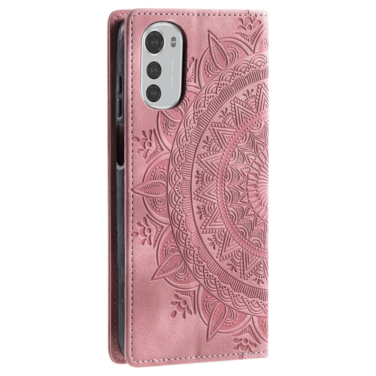 Funda de Cuero Magnética para Motorola Moto E32 Totem en Relieve (Oro Rosa)