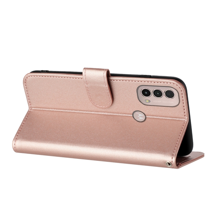 - 1x Funda de Cuero para Motorola Moto E40 Datura Flower con Tapa en Relieve (Oro Rosa)