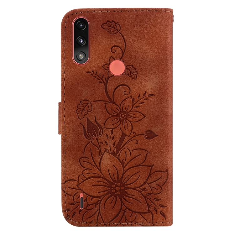 Funda para Motorola Moto E7 Power y E7I Power Lily de Cuero en Relieve (Marrón)
