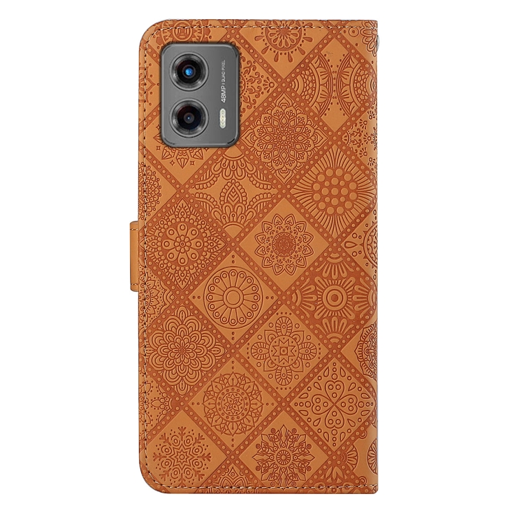 Funda de Cuero para Motorola Moto G 2023 con Patrón En Relieve Estilo Étnico (Marrón)