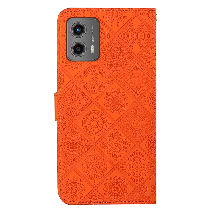 Funda de Cuero para Motorola Moto G 2023 con Patrón en Relieve de Estilo Étnico (Naranja)