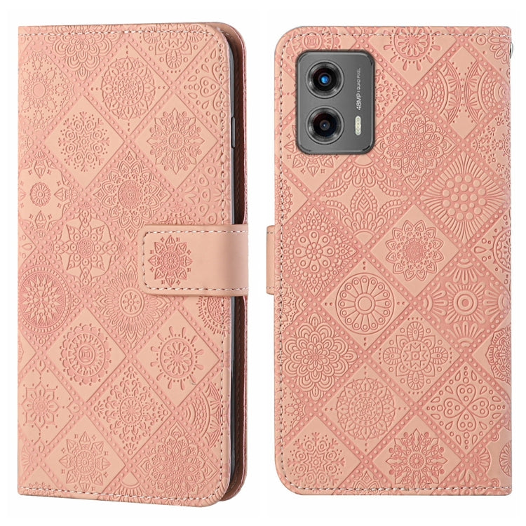 Funda de Cuero para Motorola Moto G 2023 con Patrón en Relieve Estilo Étnico (Rosa)