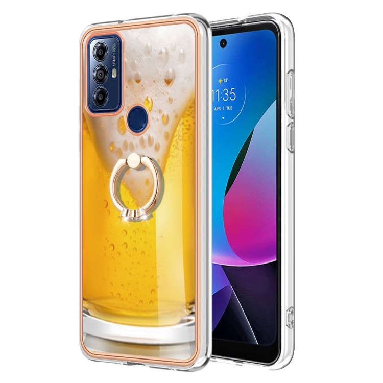 - 1x Caja para Motorola Moto G Play (2023) IMD doble cara galvanizada con Soporte para anillo (Cerveza de Barril)