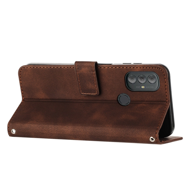 Funda de Cuero para Motorola Moto G Play 2023 y G Power 2022 con Cordón (Marrón)