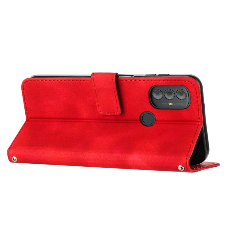 Funda de Cuero para Motorola Moto G Play 2023 y G Power 2022 con Cordón (Rojo)
