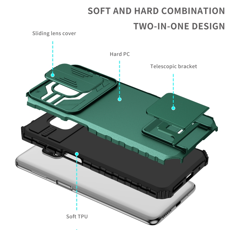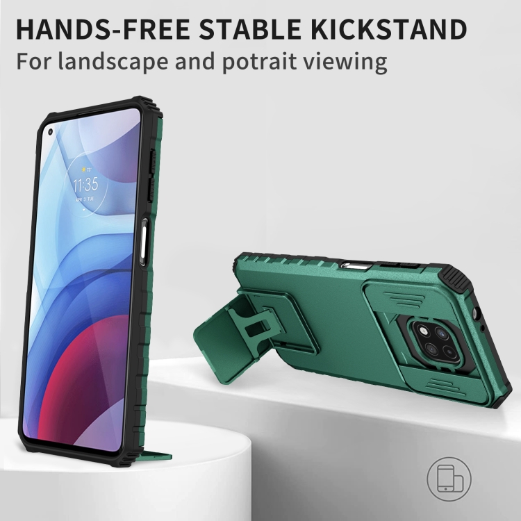 - 1x Soporte Estereoscópico Funda Deslizante para Motorola Moto G Power (2021) Camshield (Verde)