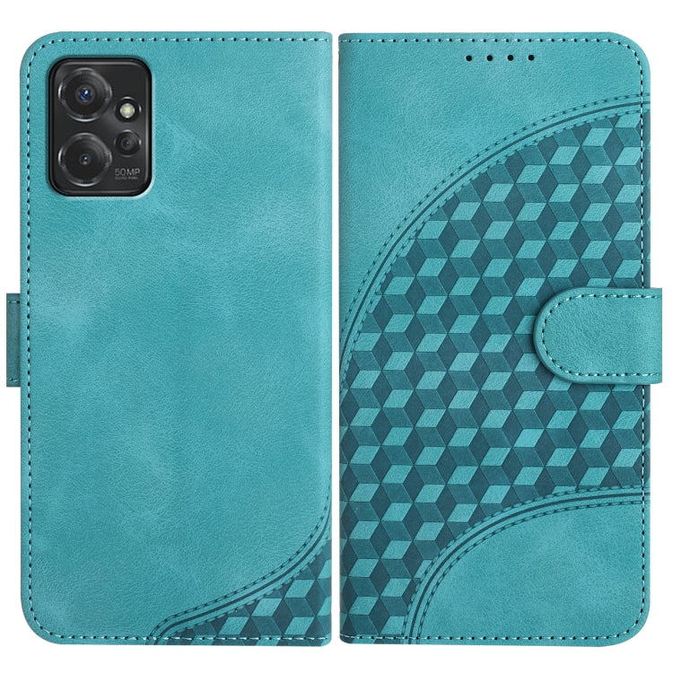 Funda de Cuero Motorola Moto G Power 2023 Yx0060 con Relieve y Cabeza de Elefante con Cordón (Azul Claro)