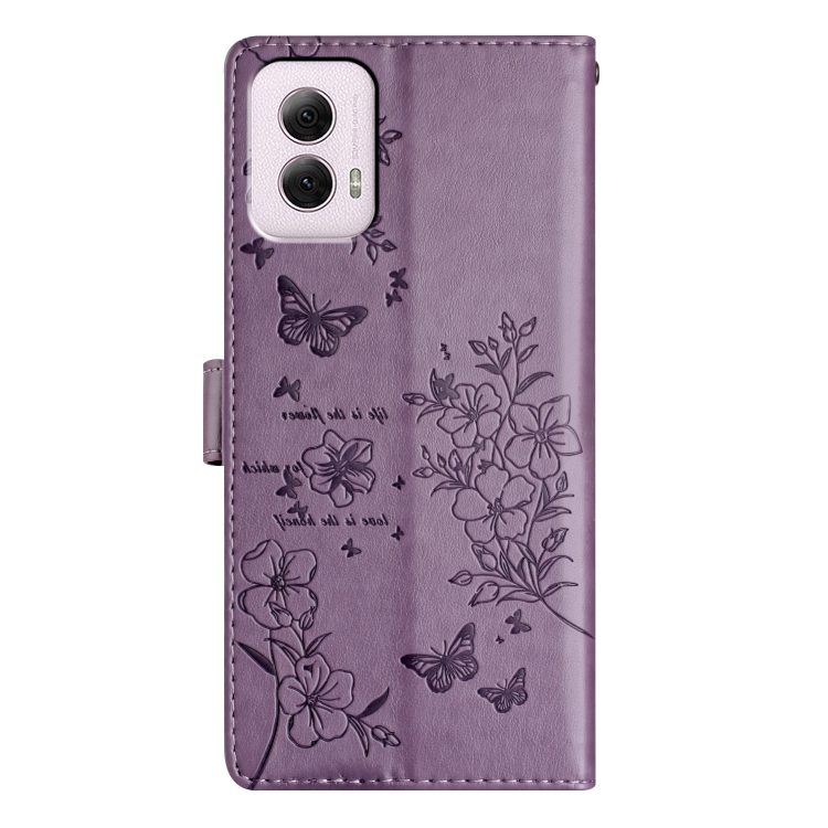 Funda de Cuero para Motorola Moto G Power 5G con Mariposas y Flores (Púrpura)