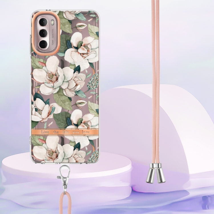 Para Motorola Moto G Stylus 2022 4G Flowers Series Case de teléfono TPU con cordón (Green Gardenia)