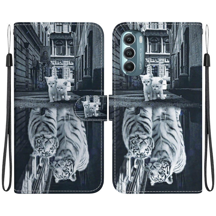 Funda de Cuero para Motorola Moto G Stylus 5G 2022 con Dibujo Coloreado y Textura de Cristal (Reflejo de Tigre Gato)