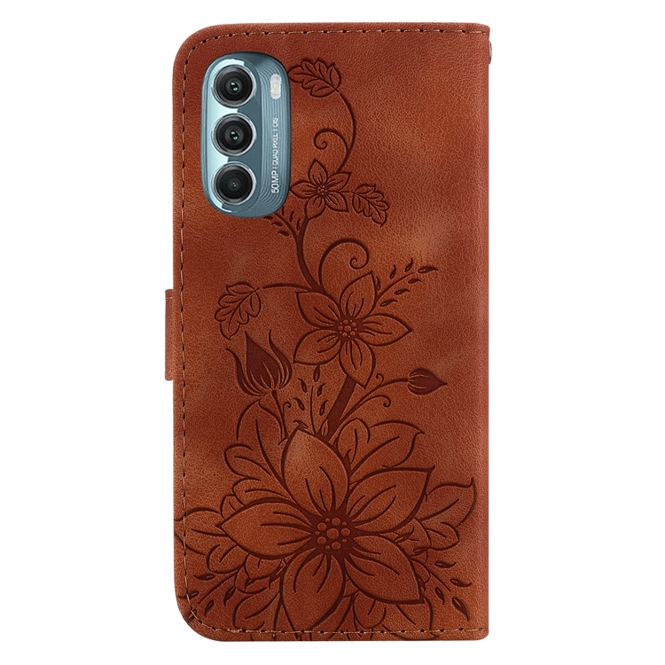 - 1x Funda de Cuero con Relieve Lily para Motorola Moto G Stylus 5G 2022 (Marrón)