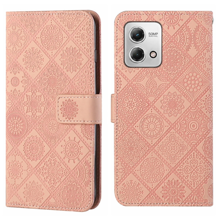 Funda de Cuero Motorola Moto G Stylus 5G 2023 con Patrón en Relieve Estilo Étnico (Rosa)