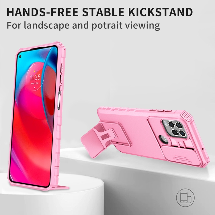 - 1x Funda para Motorola Moto G Stylus 5G con Soporte estereoscópico deslizante y Camshield (Rosa)