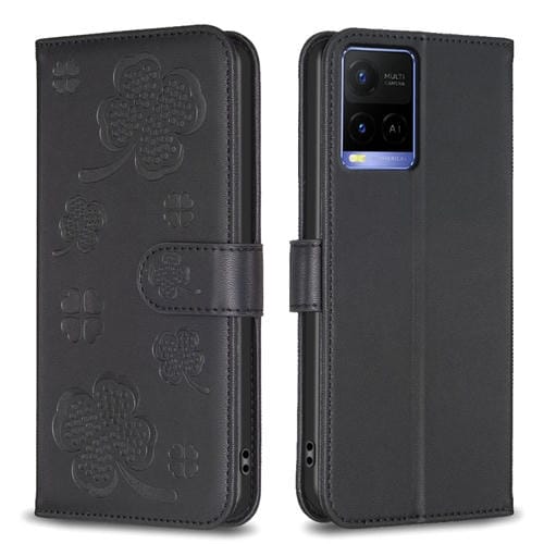 Funda para Motorola Moto G13 4G G23 4G G53 5G Cuero En Relieve Cuatro Hojas (Negro)