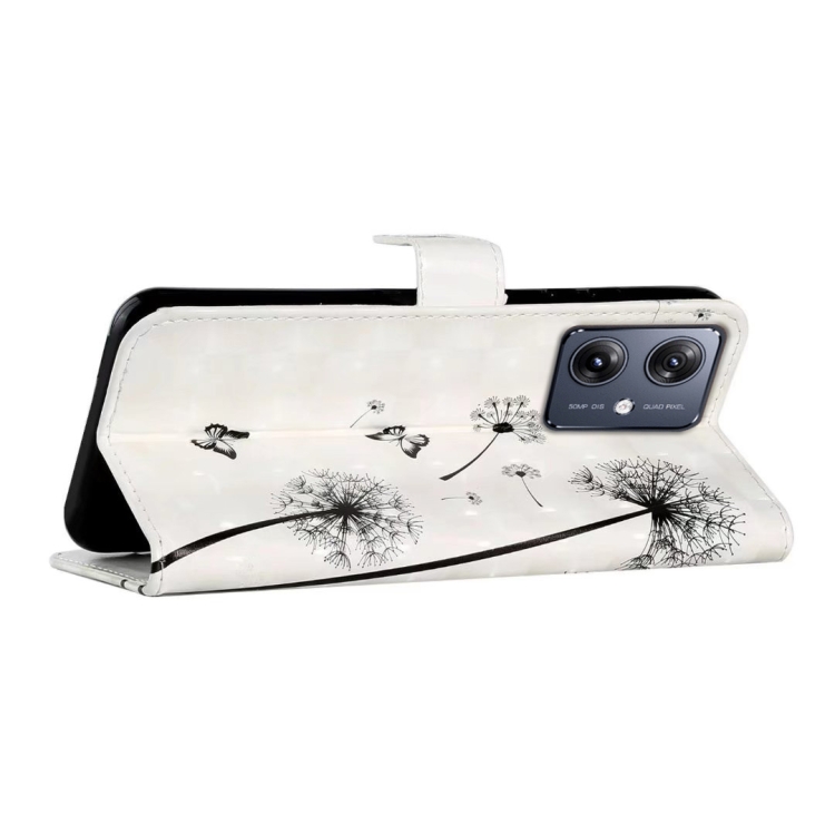 Funda de Cuero para Motorola Moto G14 4G con Dibujo 3D en Relieve al Óleo (Diente de León)