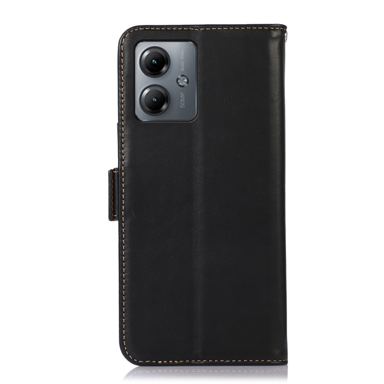 - 1x Funda Magnética Motorola Moto G14 4G con RFID Cuero Genuino Textura Caballo Loco (Negro)