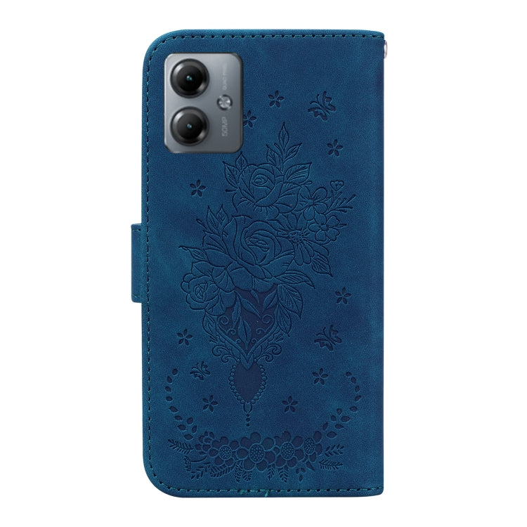 Funda de Cuero para Motorola Moto G14 Butterfly Rose en Relieve (Azul)