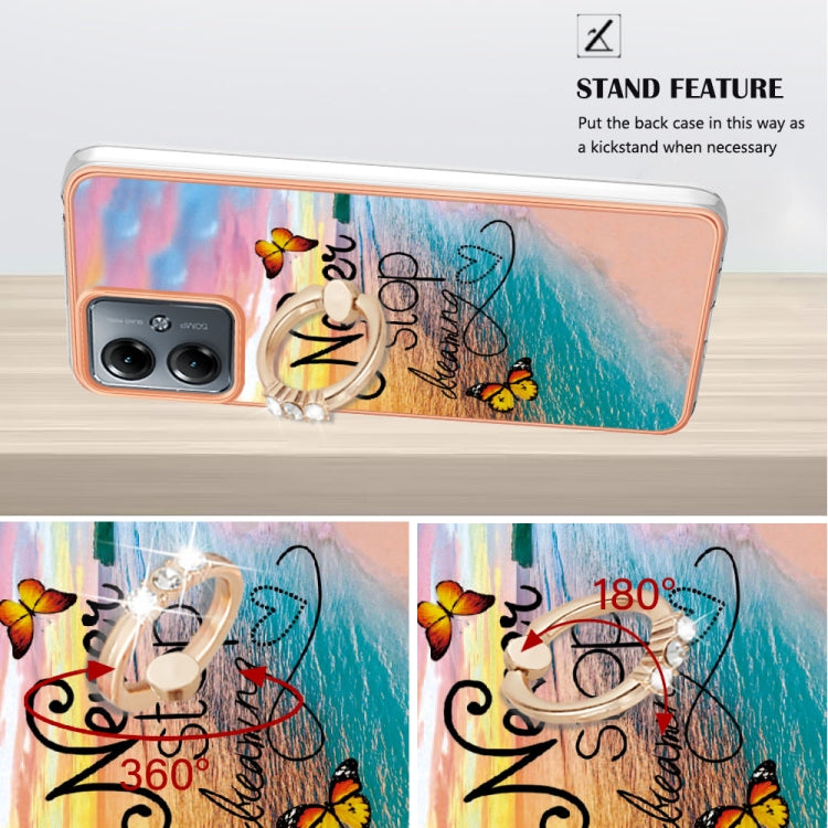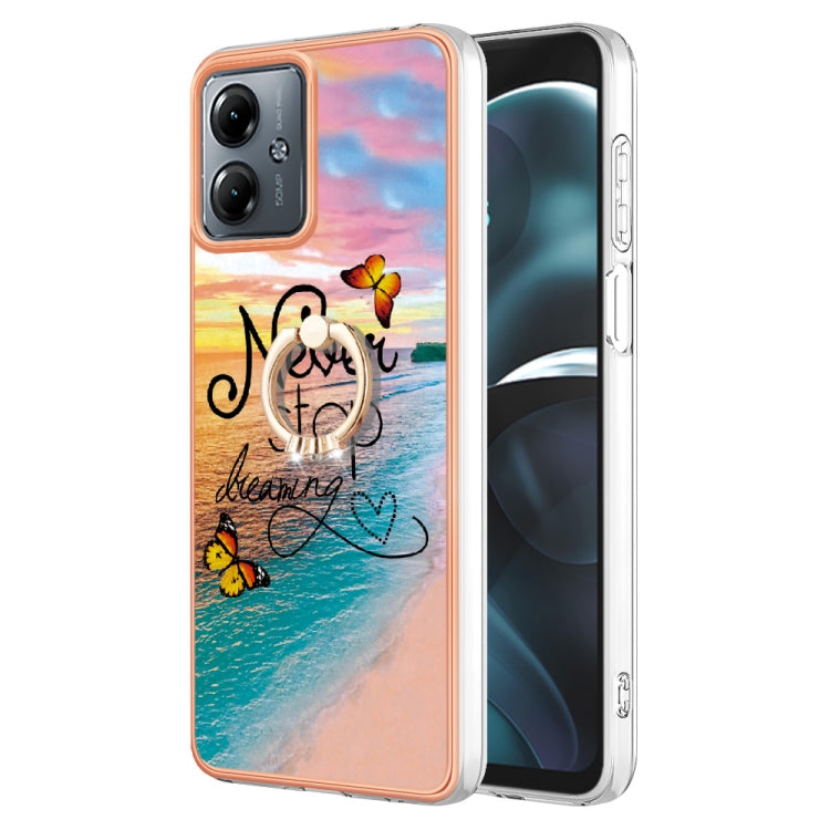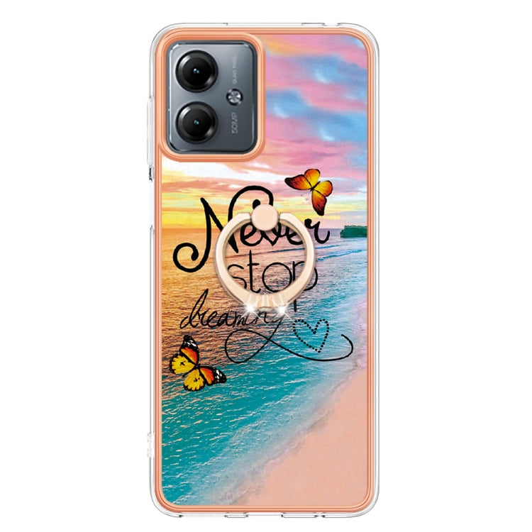 Funda para Motorola Moto G14 TPU con Galvanoplastia y Anillo (Mariposa de Ensueño)