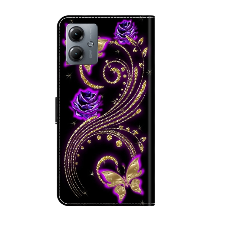Funda Protectora de Cuero para Motorola Moto G14 Crystal 3D a Prueba de Golpes (Púrpura)