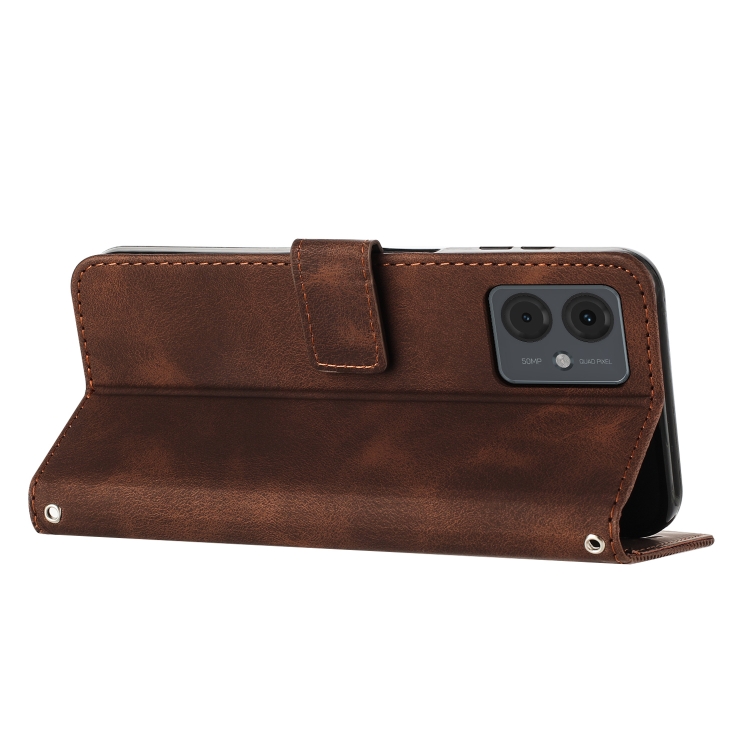 Funda de Cuero para Motorola Moto G14 Dream Triangle con Cordón (Marrón)