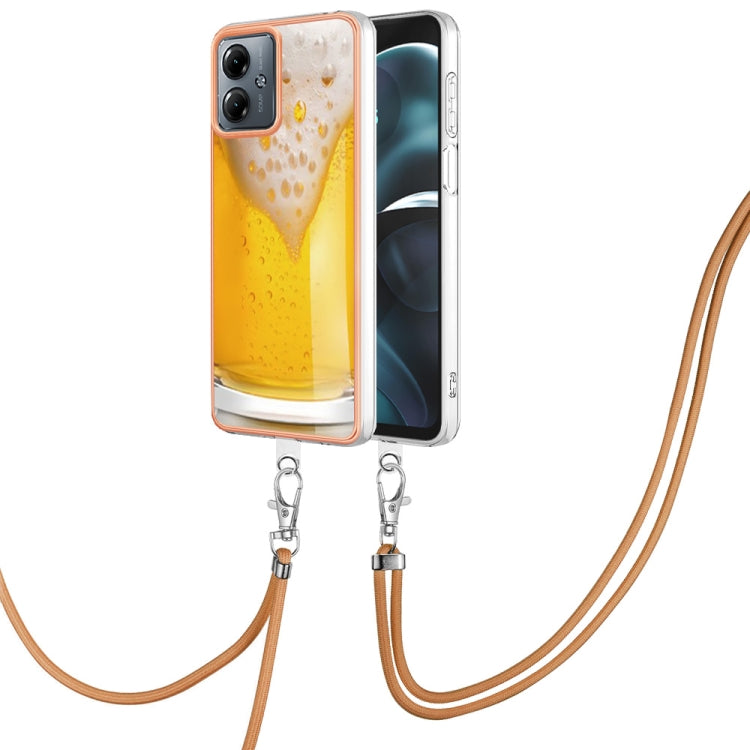 Estuche para Motorola Moto G14 Imd Doble Cara con Galvanoplastia y Cordón (Cerveza de Barril)