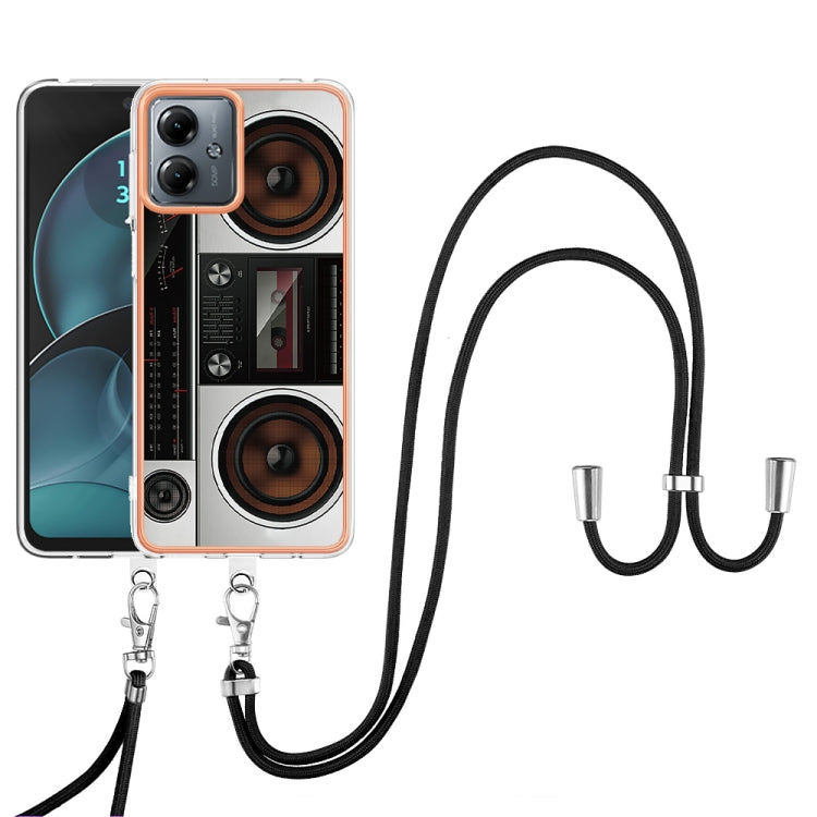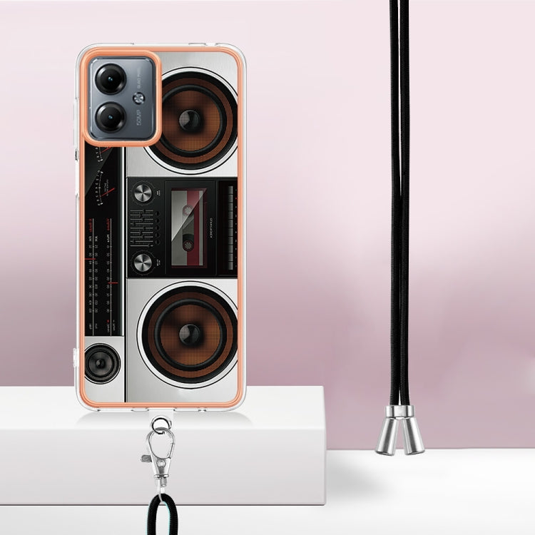 Estuche para Motorola Moto G14 Imd Doble Cara con Galvanoplastia y Cordón (Radio Retro)