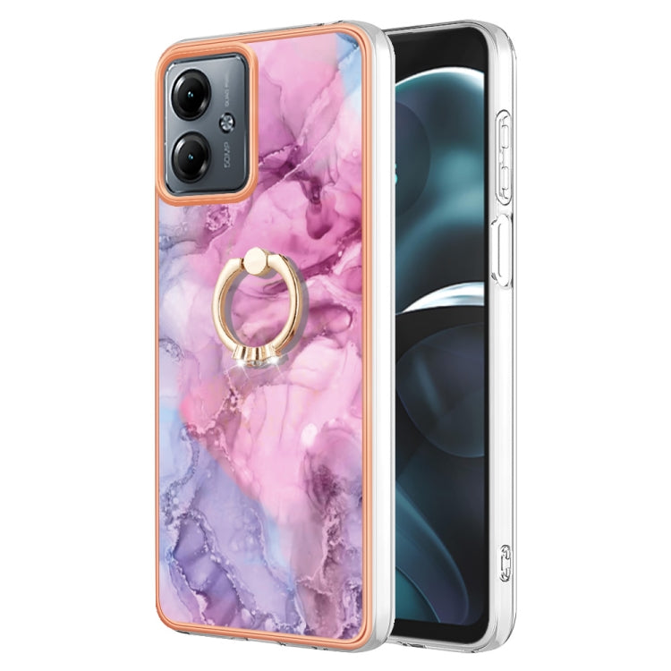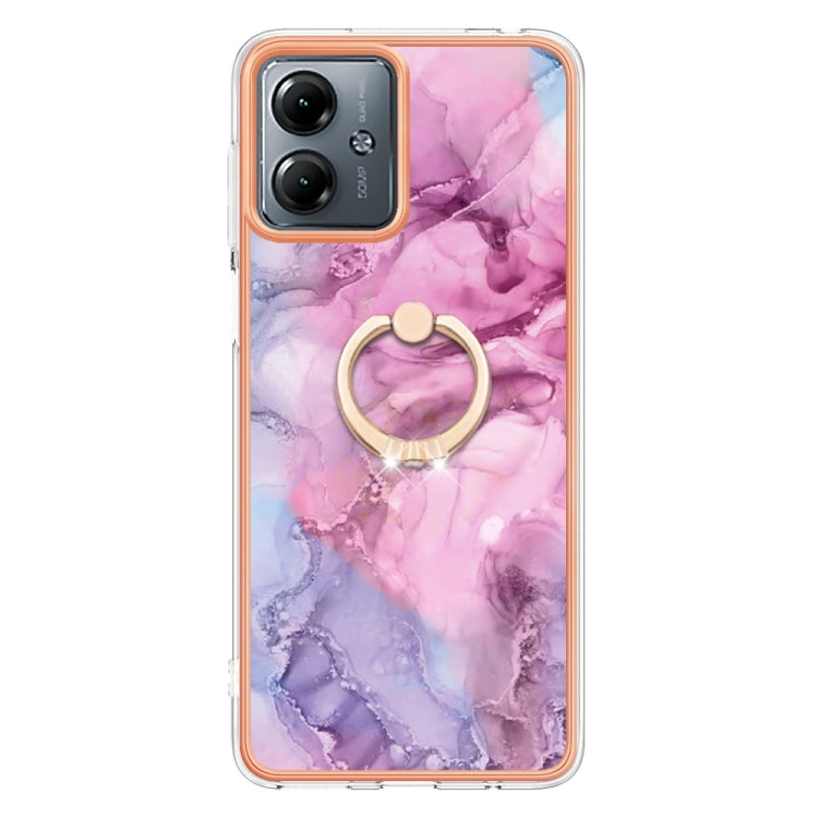 Estuche para Motorola Moto G14 Imd Doble Cara Mármol Galvanizado con Anillo (Rosa)