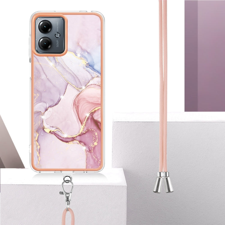 Estuche para Motorola Moto G14 Imd Doble Cara Mármol Galvanizado con Cordón (Oro Rosa)