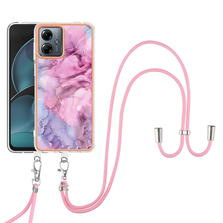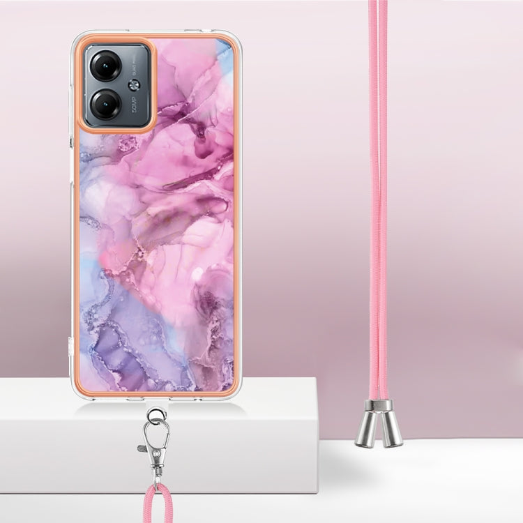 Estuche para Motorola Moto G14 Imd Doble Cara Mármol Galvanizado con Cordón (Rosa)