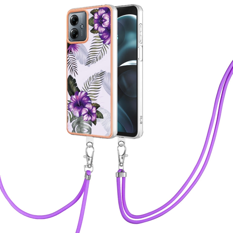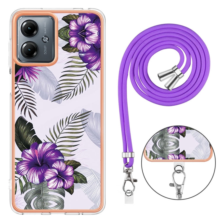 Estuche para Motorola Moto G14 TPU Imd con Galvanoplastia y Cordón (Flor Púrpura)