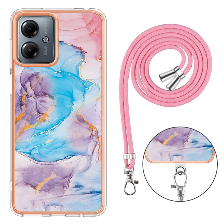 Estuche para Motorola Moto G14 TPU Imd con Galvanoplastia y Cordón (Mármol Azul)