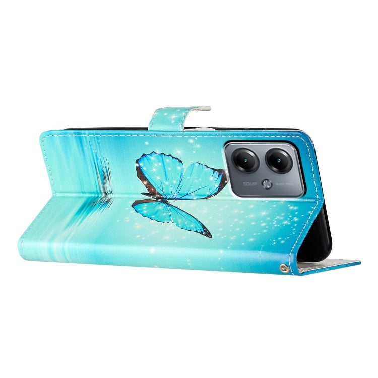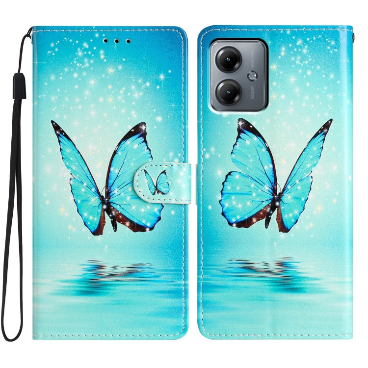 Funda de Cuero para Motorola Moto G14 con Dibujo Coloreado Mariposa Azul