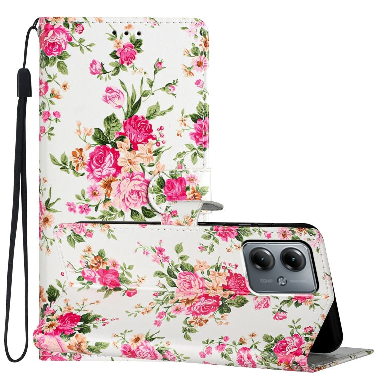 Funda de Cuero para Motorola Moto G14 con Dibujo Coloreado Peonías