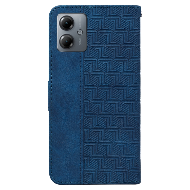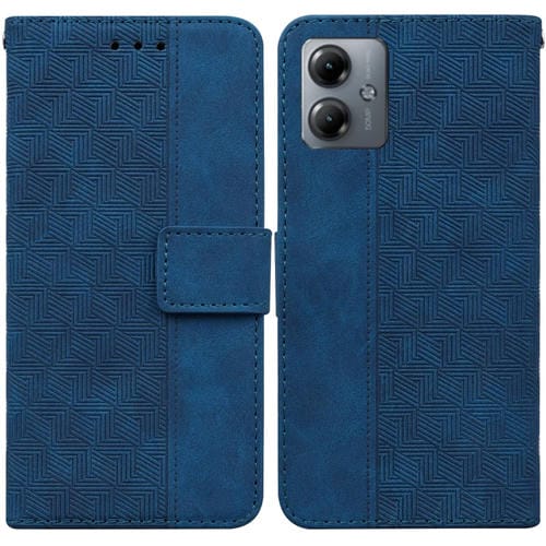Funda de Cuero para Motorola Moto G14 con Relieve Geométrico (Azul)