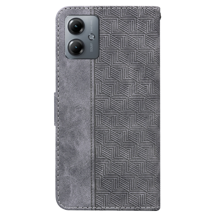 Funda de Cuero para Motorola Moto G14 con Relieve Geométrico (Gris)