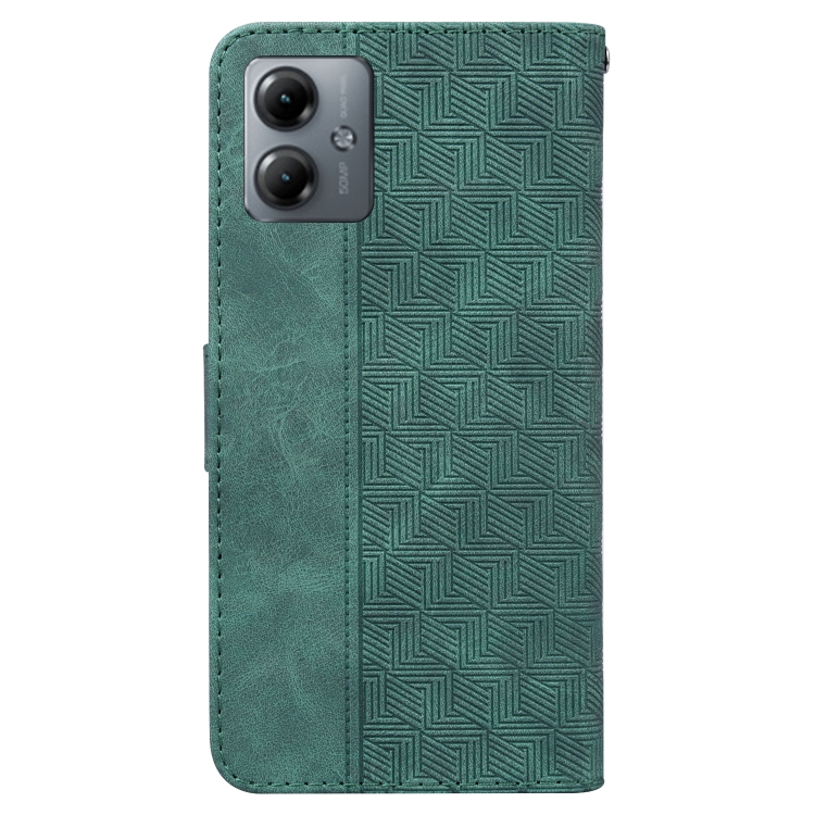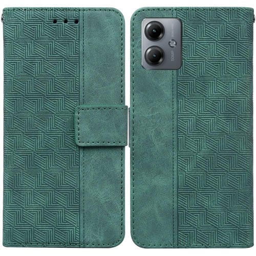 Funda de Cuero para Motorola Moto G14 con Relieve Geométrico (Verde)