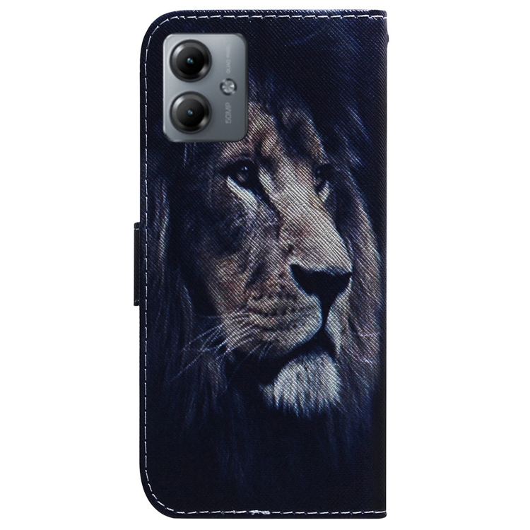 - 1x Funda de Cuero con Tapa para Motorola Moto G14 con Dibujo Coloreado (León)