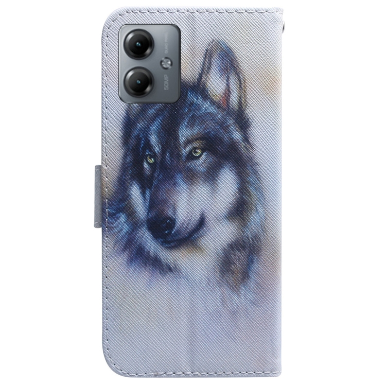 Funda de Cuero con Tapa para Motorola Moto G14 con Dibujo Lobo Blanco
