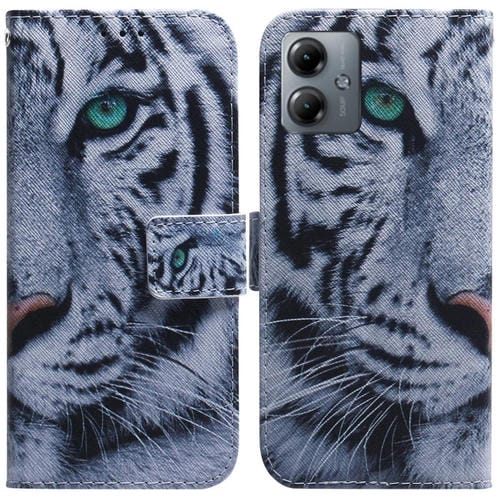 - 1x Funda de Cuero para Motorola Moto G14 con Tapa y Dibujo Coloreado (Tigre)