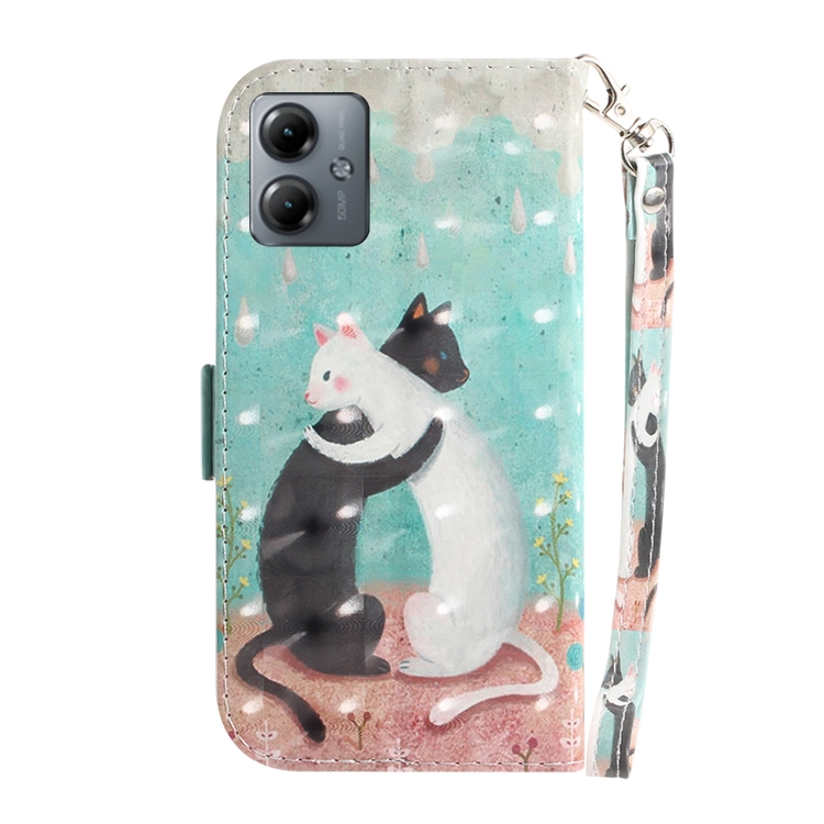 - 1x Funda de Cuero para Motorola Moto G14 con Tapa Horizontal y Diseño 3D (Gato Blanco Negro)