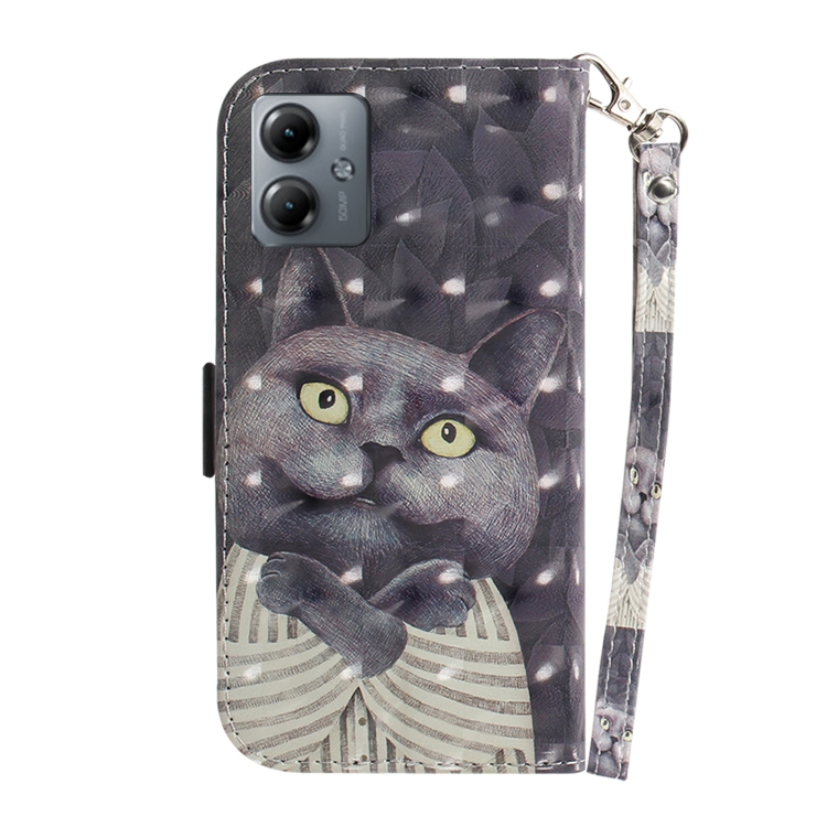- 1x Funda de Cuero para Motorola Moto G14 con Tapa Horizontal y Diseño 3D (Hug Cat)
