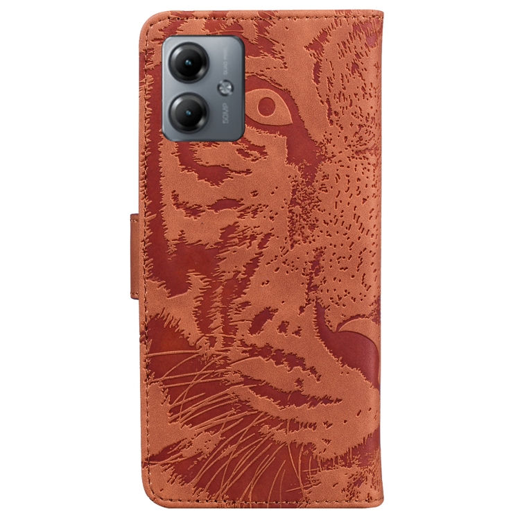 - 1x Funda de Cuero para Motorola Moto G14 con Patrón Tiger Embossed (Marrón)