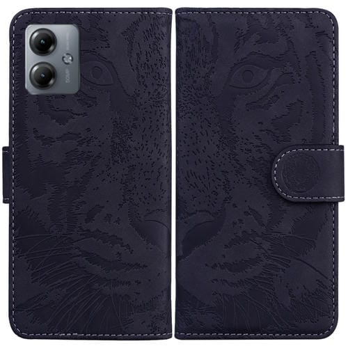 - 1x Funda de Cuero para Motorola Moto G14 con Patrón Tiger Embossed (Negro)