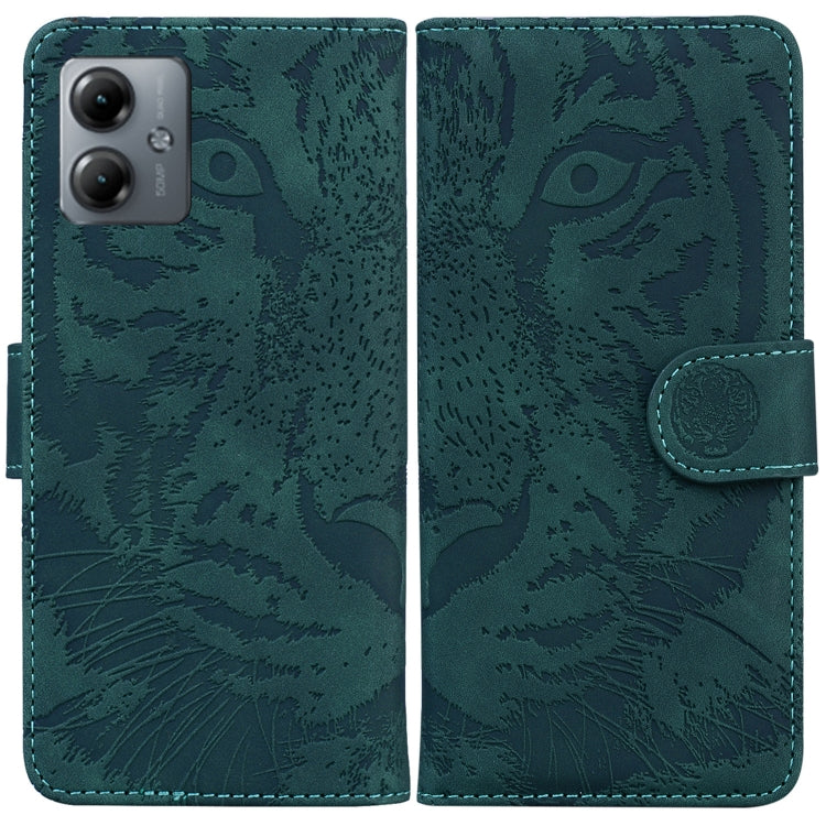 Funda de Cuero para Motorola Moto G14 Tiger con Patrón Embossed (Verde)