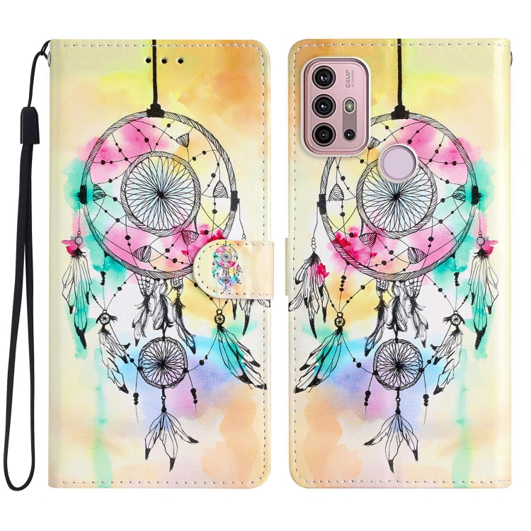 Estuche de Cuero para Motorola Moto G20 con Dibujo Coloreado Atrapasueños