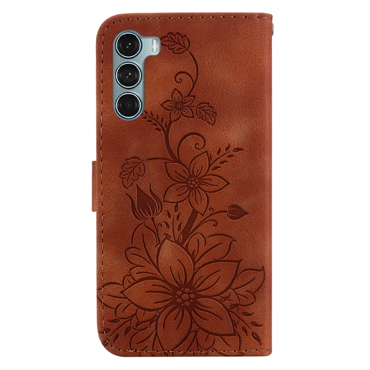 - 1x Funda para Motorola Moto G200 5G Edge S30 de Cuero con relieve Lily (Marrón)