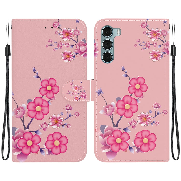 Funda de Cuero para Motorola Moto G200 5G con Dibujo Coloreado y Textura de Cristal (Flores de Cerezo)